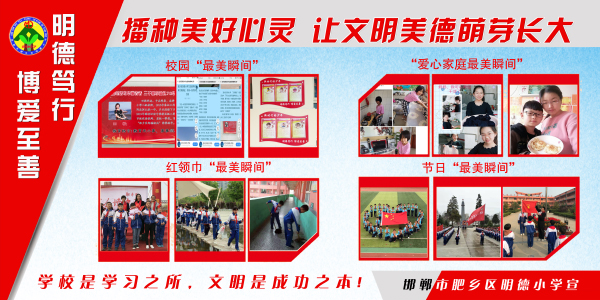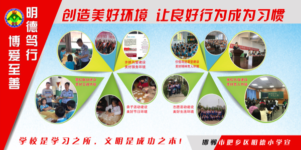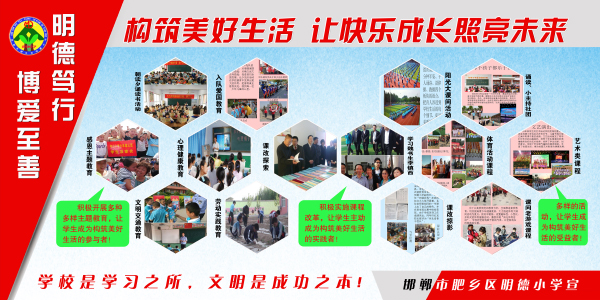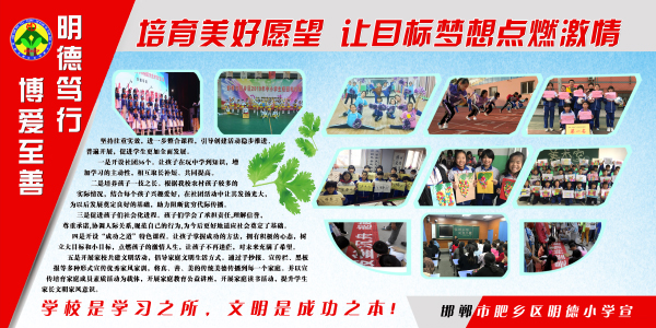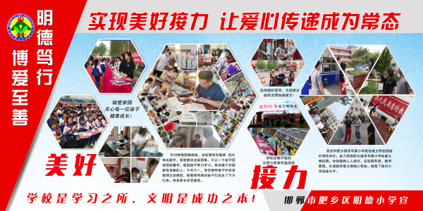 肥鄉(xiāng)區(qū)明德小學(xué)秉承 “全人教育”的理念,致力打造“明德篤行 博愛至善 ”的品牌學(xué)校,并形成獨具特色的校園文化,師生浸潤在“五美教育,文明成長”的氛圍中。
