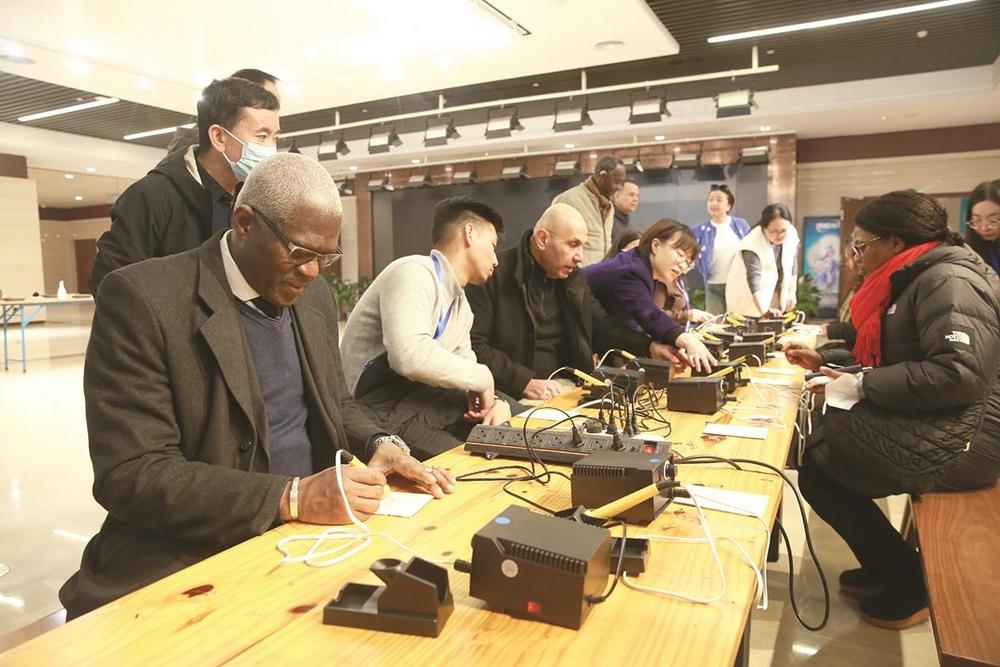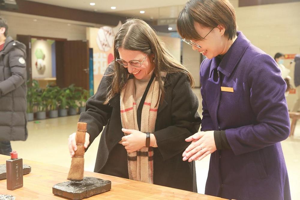 12月8日,在邯鄲市博物館,外交官們體驗(yàn)非遺技藝?yán)赢媱?chuàng)作。 本報(bào)記者 范文平 攝