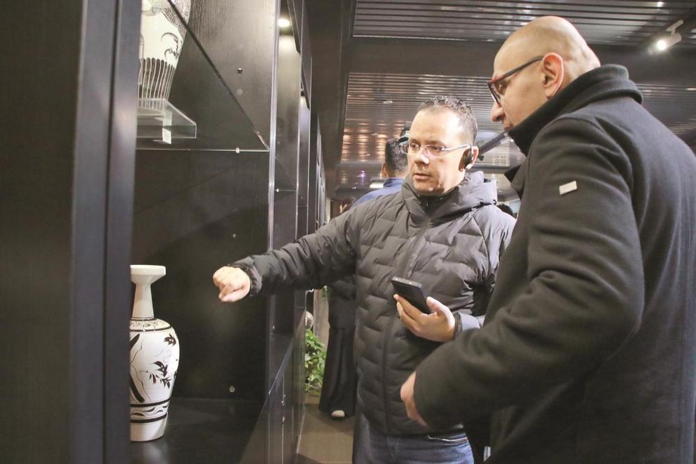 講解員重點(diǎn)介紹了磁州窯“粗瓷細(xì)作”的匠心——用當(dāng)?shù)仄胀ǖ摹按笄嗤痢?,?jīng)匠人之手幻化為兼具實(shí)用與藝術(shù)價(jià)值的瓷器,尤其是白地黑花的裝飾技法,以簡練的線條勾勒出花鳥、人物,充滿生活氣息。外交官們俯身端詳,有的還拿出手機(jī)放大鏡仔細(xì)觀察釉色肌理,對這份源于生活的藝術(shù)創(chuàng)造力贊不絕口。