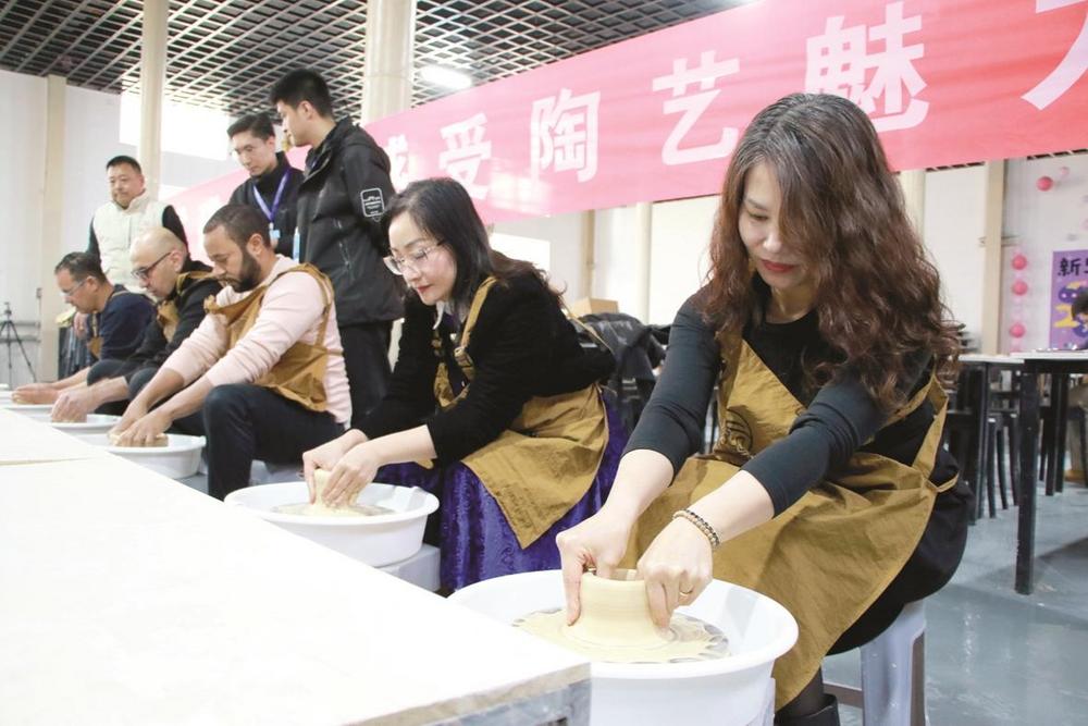 12月10日,外交官在峰峰礦區(qū)磁州窯文化藝術(shù)街區(qū)體驗(yàn)磁州窯拉坯技藝。 本報(bào)記者 劉學(xué)維 攝