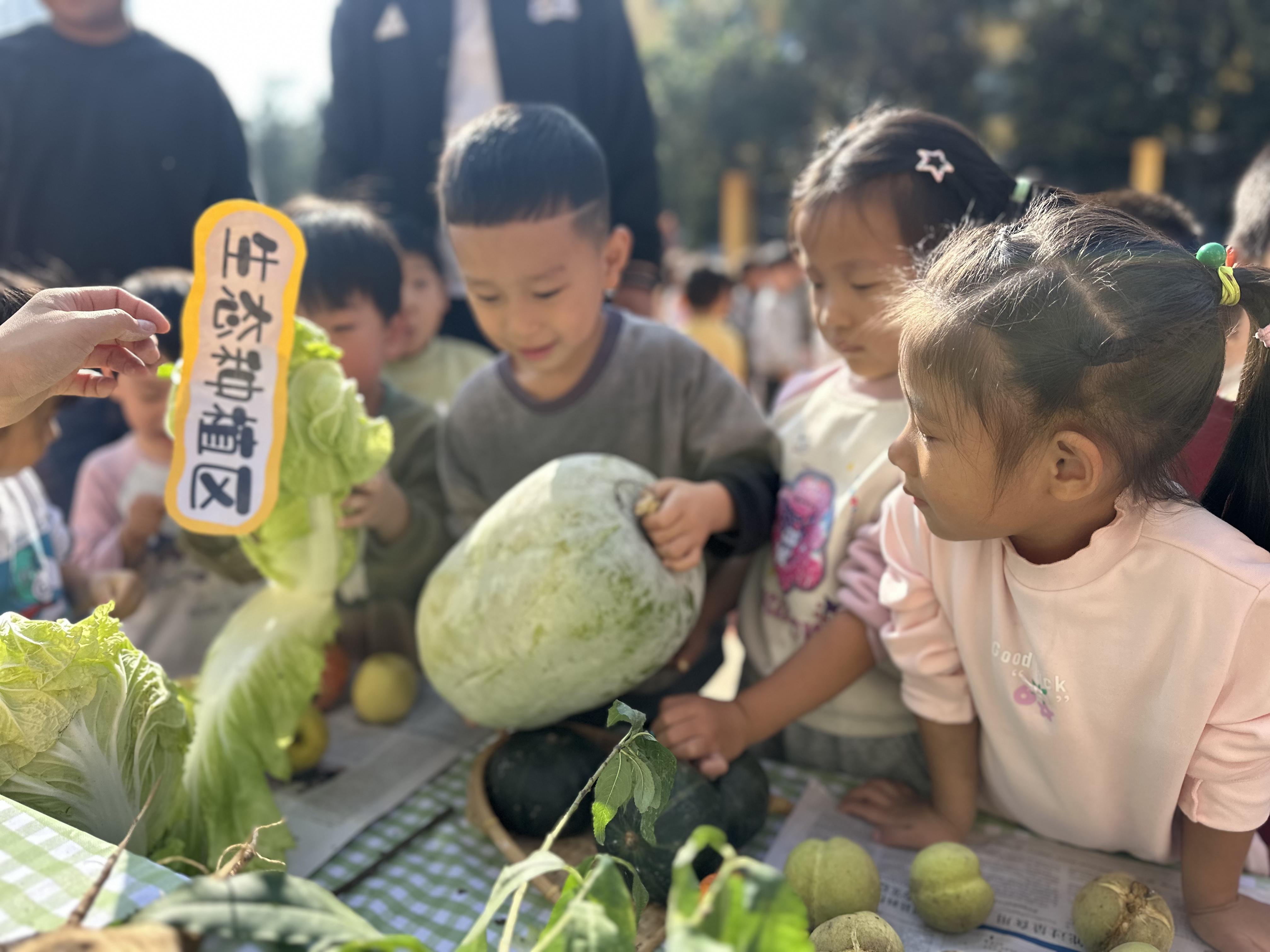 展區(qū)活動(dòng)豐富多彩:孩子們?cè)谑卟藚^(qū)觸摸南瓜青椒,感受泥土芬芳;在糧食區(qū)觀察米粒變化,了解作物蛻變;在水果區(qū)聆聽“從花到果”的成長(zhǎng)故事。勞動(dòng)區(qū)里,小手剝玉米、洗土豆,親身體會(huì)“勞動(dòng)不易”;晾曬區(qū)中,觀察香菇紅薯,學(xué)習(xí)儲(chǔ)存智慧;游戲區(qū)里,猜農(nóng)謠答趣題,歡樂中鞏固認(rèn)知;品嘗區(qū)內(nèi),享用親手制作的美食,品味勞動(dòng)香甜。