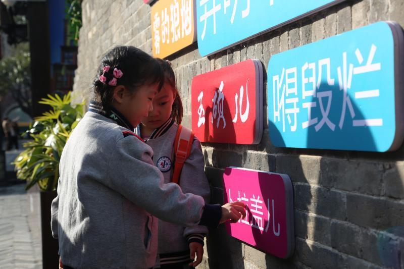 走進(jìn)回車巷,老師結(jié)合“負(fù)荊請(qǐng)罪”的成語(yǔ)典故,用充滿童趣的語(yǔ)言講述了廉頗與藺相如的故事,孩子們瞪大好奇的眼睛,聽得津津有味。