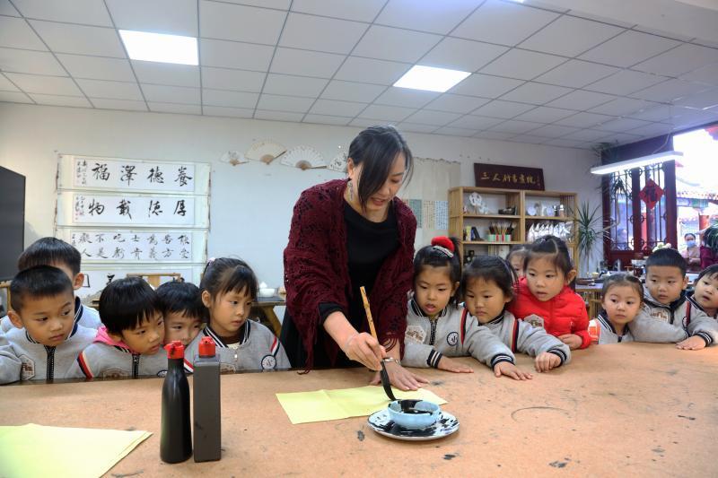 在和氏璧造型前,孩子們化身“小小故事家”,講述“完璧歸趙”的典故。隨后,孩子們走進(jìn)荀子學(xué)宮,在竹簡(jiǎn)展示區(qū),孩子們聽著老師的講解,沉浸式體驗(yàn)傳統(tǒng)文化的獨(dú)特魅力。