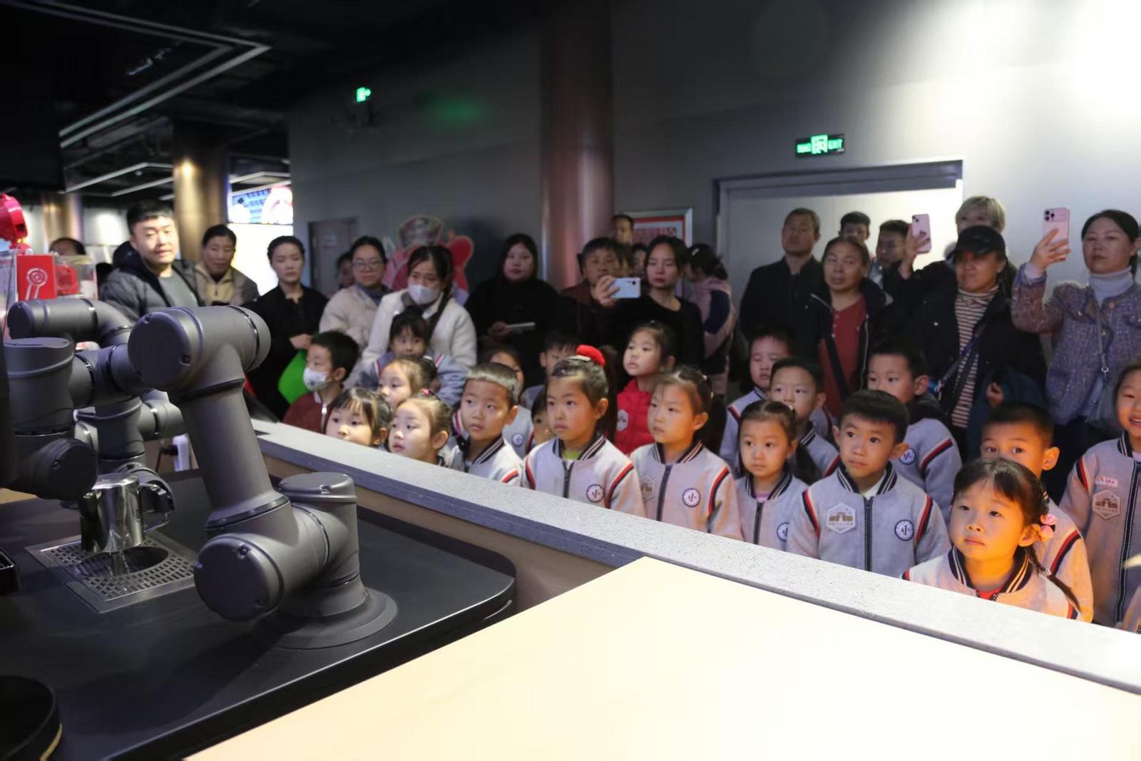 在成語(yǔ)文化體驗(yàn)館內(nèi),“邯鄲學(xué)步”等趣味互動(dòng)游戲引得孩子們哈哈大笑。在成語(yǔ)咖啡體驗(yàn)區(qū),機(jī)器人沖泡出香氣四溢的成語(yǔ)咖啡,讓孩子們感受到傳統(tǒng)文化與現(xiàn)代科技的碰撞。