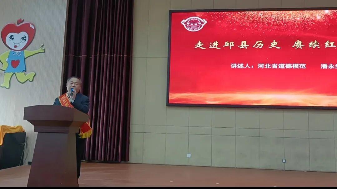 在邱縣第二中學附屬小學,河北省道德模范潘永生深情講述了自己多年來致力于紅色精神賡續(xù)傳承的故事,將紅色基因深深植入青少年心中。通過講述香城固伏擊戰(zhàn)和邱縣的紅色歷史,深刻闡釋亮劍精神和咬牙精神,希望同學們能夠銘記歷史、直面挑戰(zhàn)、自強不息,將來為祖國的建設貢獻自己的力量。最后,潘永生和同學們齊聲誦讀《少年中國說》,“美哉我少年中國,與天不老!壯哉我中國少年,與國無疆!”那充滿朝氣的聲音整齊而激昂,傳遞著對祖國的熱愛和對未來的憧憬,在校園久久回響。