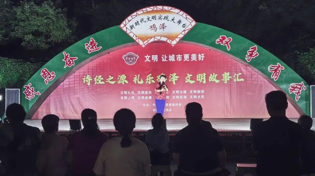9月8日晚,由縣委宣傳部、縣文明辦主辦的“詩經(jīng)之源 禮樂雞澤 文明故事匯”首場主題活動在樸園廣場文明實踐大舞臺溫情啟幕?;顒右浴拔拿?,讓城市更美好”為主題,圍繞十大文明領(lǐng)域,通過身邊好人故事講述、文明交通主題宣講與傳統(tǒng)戲曲演唱相結(jié)合的創(chuàng)新形式,為市民呈現(xiàn)了一場融合文化傳承與文明傳播的盛宴。