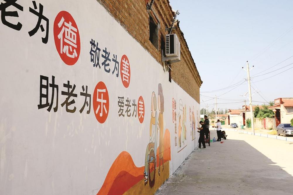 工作初步告成的徐曉真信心大增,又陸續(xù)完成了“敬老愛幼”和“移風(fēng)易俗”主題文化墻繪制。創(chuàng)作期間,村里的6名青年先是好奇地圍觀,之后也主動(dòng)加入“繪畫師”的隊(duì)伍。