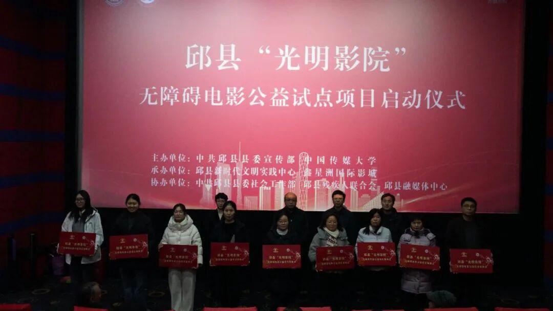 12月2日下午,由邱縣縣委宣傳部、縣委社會(huì)工作部、縣殘聯(lián)聯(lián)合主辦的邱縣“光明影院”無(wú)障礙電影公益試點(diǎn)項(xiàng)目啟動(dòng)儀式暨“光明同行,共建文明”全國(guó)聯(lián)動(dòng)放映活動(dòng)在鑫星洲國(guó)際影城舉行。今年,邱縣入選全國(guó)“光明影院”無(wú)障礙電影公益項(xiàng)目全國(guó)試點(diǎn),為確保“光明影院”項(xiàng)目在全縣范圍內(nèi)有效覆蓋,首批設(shè)立了9個(gè)公益電影放映點(diǎn)。啟動(dòng)儀式上,現(xiàn)場(chǎng)為9個(gè)“‘光明影院’無(wú)障礙公益電影放映點(diǎn)”授牌,這些放映點(diǎn)將成為視障人士享受電影藝術(shù)的新陣地,進(jìn)一步擴(kuò)大無(wú)障礙電影的覆蓋范圍。