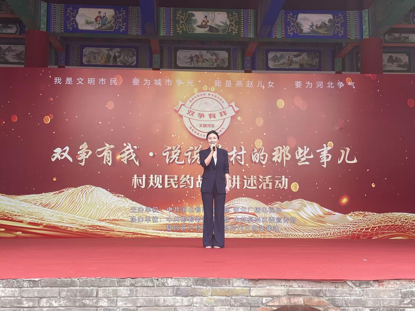 館陶縣宣講員王林參加2025河北省“雙爭(zhēng)有我·說說咱村的那些事兒”村規(guī)民約故事講述活動(dòng)(邯鄲專場(chǎng))。館陶縣委宣傳部供圖