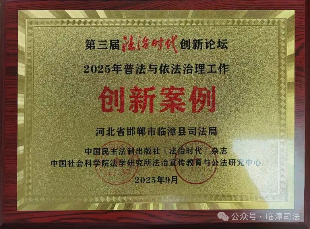 9月20日,第三屆法治時代創(chuàng)新論壇暨全民普法40周年研討會傳來喜報——臨漳縣“法潤鄴城”普法進萬家文明實踐創(chuàng)新案例,經專家評審成功榮獲普法與依法治理工作創(chuàng)新案例,成為邯鄲市普法依法治理與民生服務深度融合的又一標志性成果。