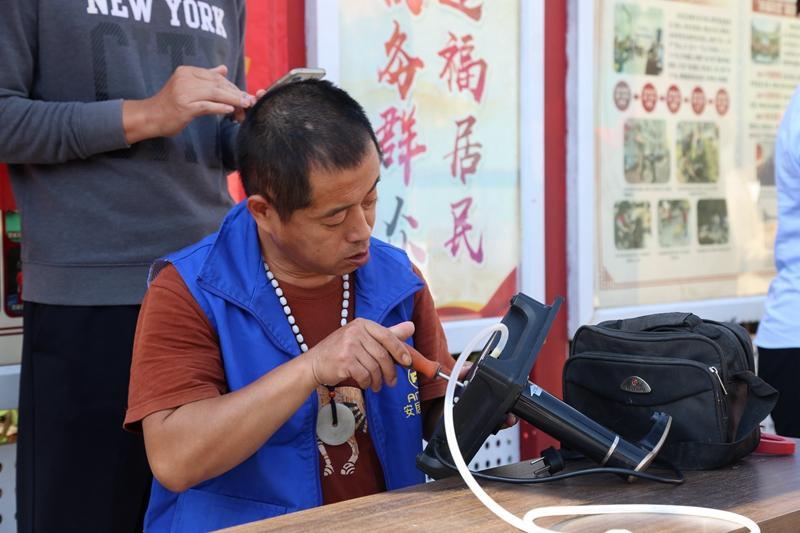 在便民服務(wù)區(qū),物業(yè)工作人員為居民義務(wù)磨剪刀、菜刀,小區(qū)居民陳先生表示,社區(qū)服務(wù)很貼心,這些活動(dòng)幫居民解決了很多生活難題。在愛(ài)心義剪區(qū),志愿者為居民免費(fèi)理發(fā),大家紛紛夸贊理發(fā)師的手藝好。小家電維修師傅邊修邊教保養(yǎng)方法 ,耐心周到的服務(wù)贏得居民的青睞。免費(fèi)飲水區(qū)工作人員精心制作了冰糖菊花茶。這些便民服務(wù)處處透著文明溫度,贏得居民連連稱(chēng)贊。