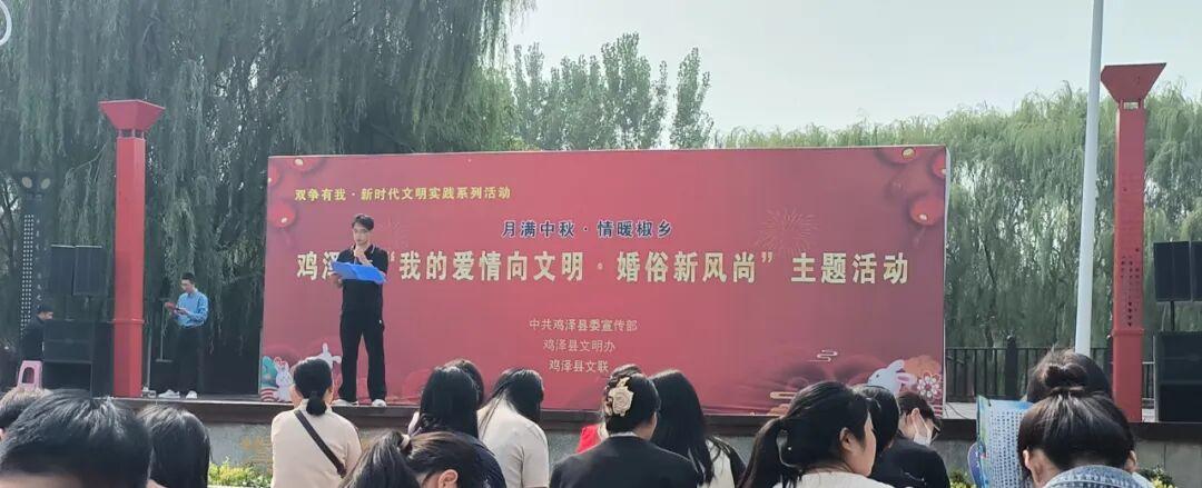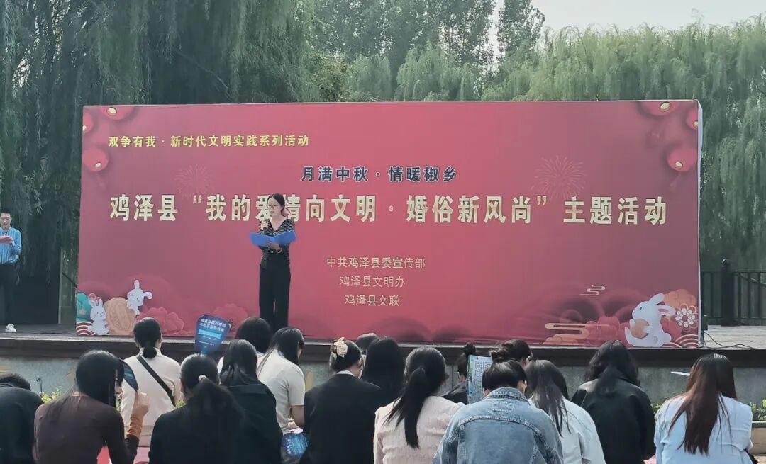 在國慶、中秋“雙節(jié)”來臨之際,9月28日,雞澤縣委宣傳部、縣文明辦在雞澤鎮(zhèn)魏青村新時(shí)代婚禮廣場,開展“我的愛情向文明·婚俗新風(fēng)尚”文明實(shí)踐主題活動(dòng)。
