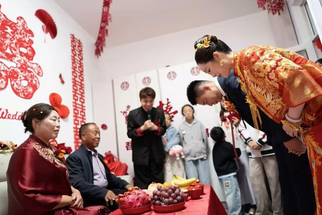 10月3日,在磁縣黃沙鎮(zhèn)申家莊村李玉龍的婚禮上,哥哥李建森擔(dān)任主持人,用樸實的話語串聯(lián)起整場儀式;親戚鄰里主動搬來桌椅,圍坐在院中見證幸福;餐桌上沒有名貴煙酒,熱氣騰騰的大鍋菜盛滿煙火氣……簡單的細節(jié)里,藏著比排場更動人的真情。一旁的老父親李天伍笑得合不攏嘴。去年10月,他家大兒子李建森以“零彩禮”辦婚禮,憑簡約溫馨的風(fēng)格收獲眾多點贊;今年10月3日,二兒子李玉龍再續(xù)新風(fēng),用簡約儀式打破陳規(guī),兩場婚事接連為當(dāng)?shù)剜l(xiāng)風(fēng)文明注入鮮活力量。