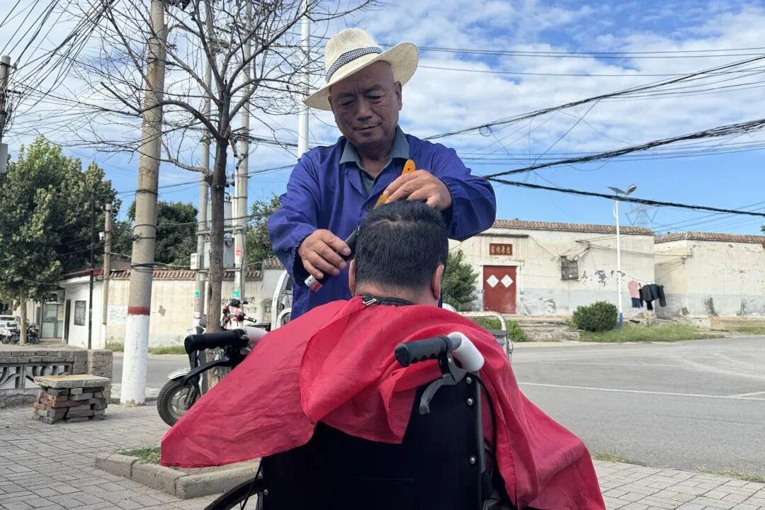 “誰(shuí)都有老的時(shí)候,能幫一點(diǎn)是一點(diǎn)?!边@是王有賀常掛在嘴邊的話。他總是默默地將毛巾提前預(yù)熱,細(xì)心地在老人腰后墊上軟枕,每剪幾下就會(huì)輕聲詢問(wèn)“這么剪舒不舒服?”——每一個(gè)細(xì)節(jié)都透露著這位六旬剃頭匠的匠心與溫情。